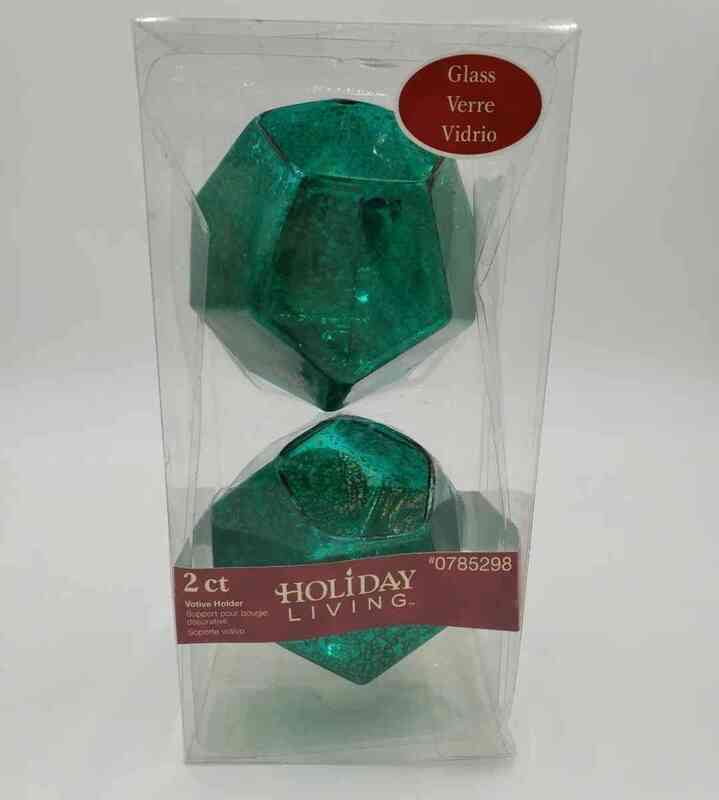 Green Glass Candle Votive Holders - In Box - Holiday Living - Christmas 2 perho